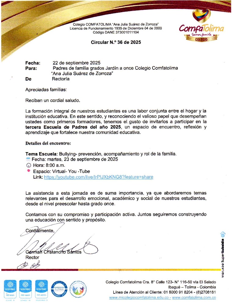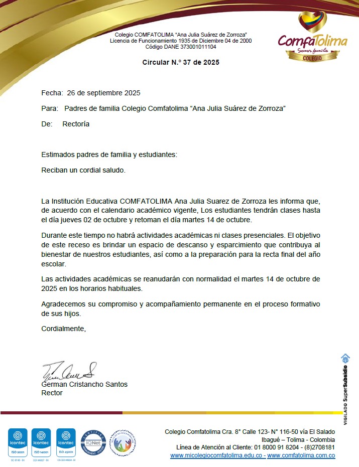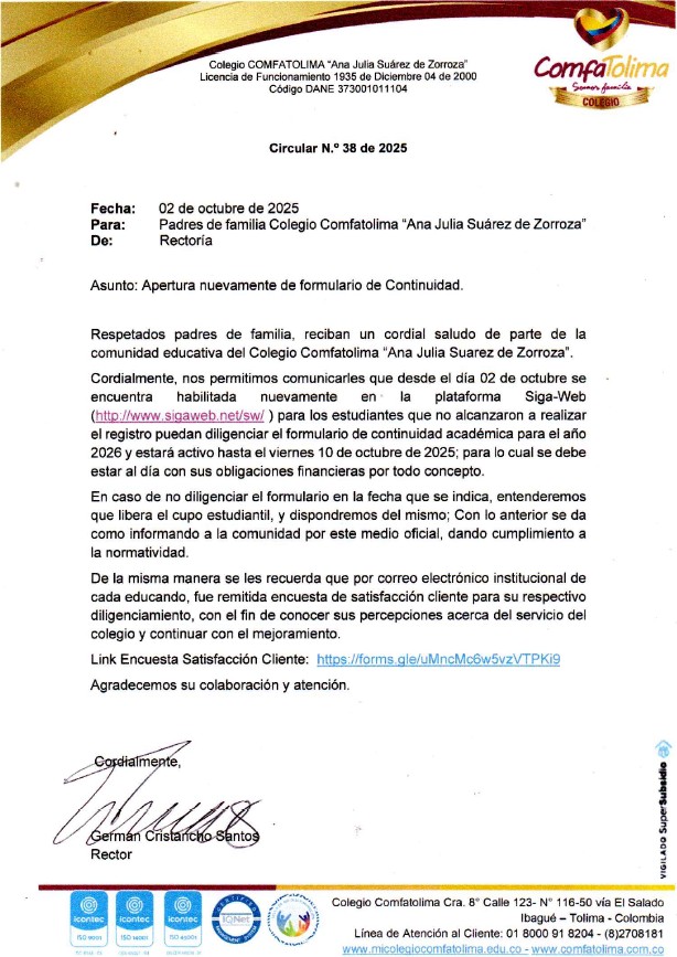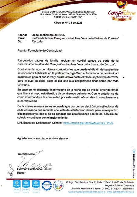 Circular No. 34 - Encuestas de Continuidad Académica y Satisfaccion del cliente