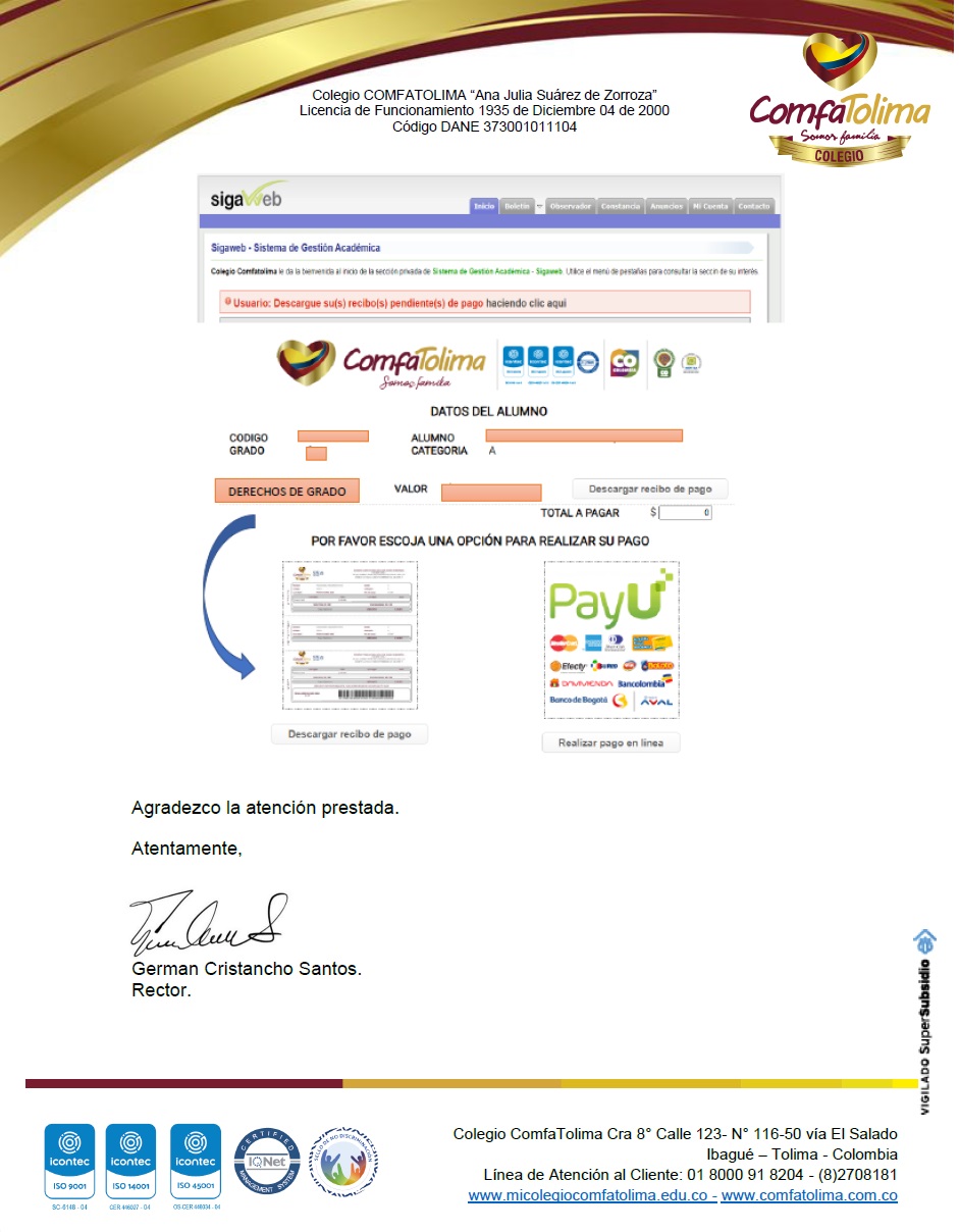 Circular No. 31 - Derechos de grado para Transición, Quinto y Once